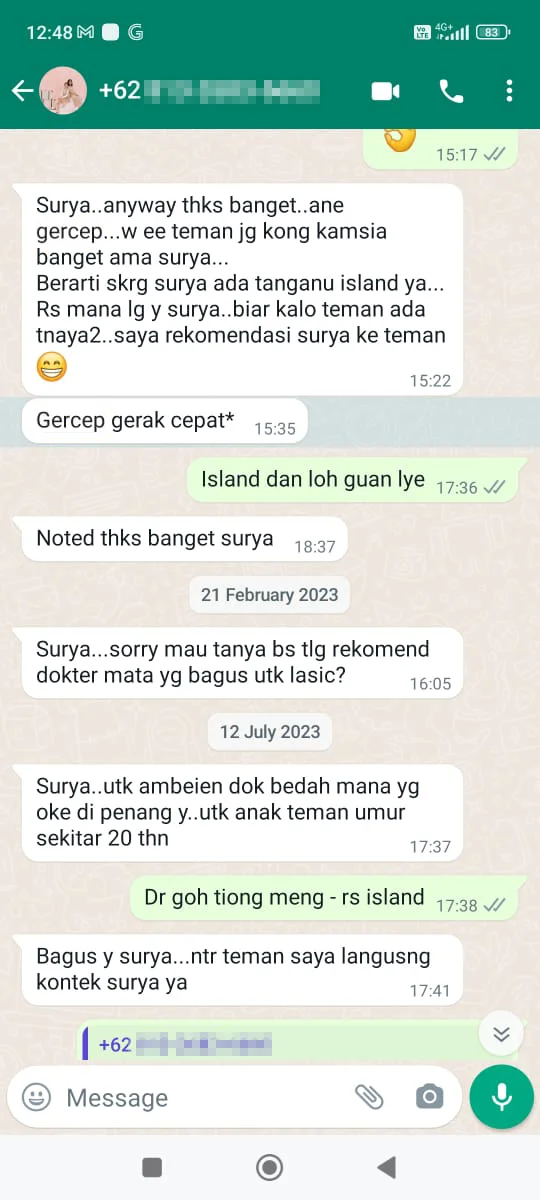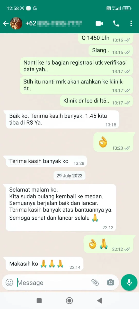 Awesome!!! Great Service, Friendly, Helpful, Informative, and Reliable. Thank you so much, Opsimedis. Thank you, Sulung n Surya. Mulai dari konsultasi utk mencari dokter yg tepat, sampai dibantu utk jadwal appointment sama dokter. Free of charge, tidak ada biaya tambahan apapun dari Opsimedis.